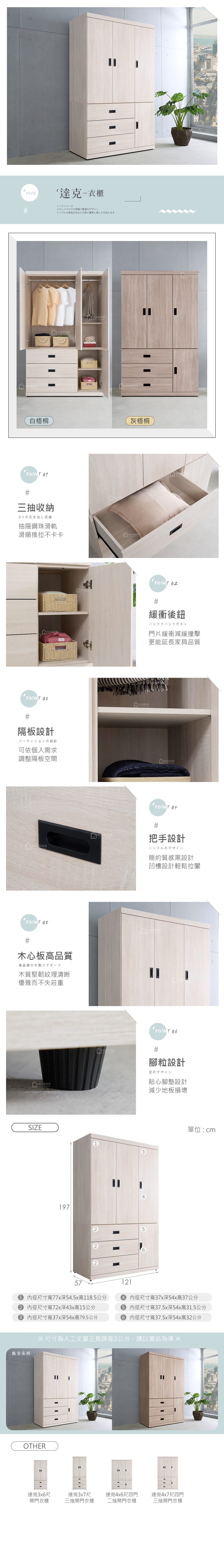 【時尚屋】[UF13]達克4x7尺四門三抽開門衣櫃,色系白梧桐、灰梧桐為主,點綴臥室視覺空間美感,材質上採用木心板、鋼珠滑軌、緩衝後鈕等,均高於市場之產品規格,品質絕對有保證!此衣櫃在收納空間上採三抽,絕對可滿足您對收納的需求,相當於收納櫃之功能!有了他絕對可以讓您煥然一新!時尚屋帶給您對家具時尚新品味。