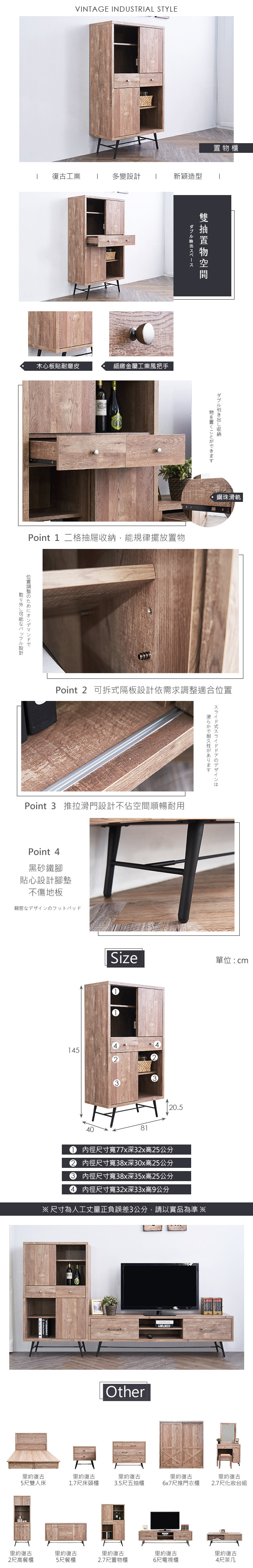 【時尚屋】[VRZ8]里約復古2.7尺置物櫃,色系橡木色為主,點綴客廳視覺空間美感,材質上採用木心板、鋼珠滑軌、黑砂鐵腳等,均高於市場之產品規格,品質絕對有保證!此置物櫃在收納空間上採二抽+滑門,絕對可滿足您對收納的需求,相當於收納櫃之功能!有了他絕對可以讓您煥然一新!時尚屋帶給您對家具時尚新品味。