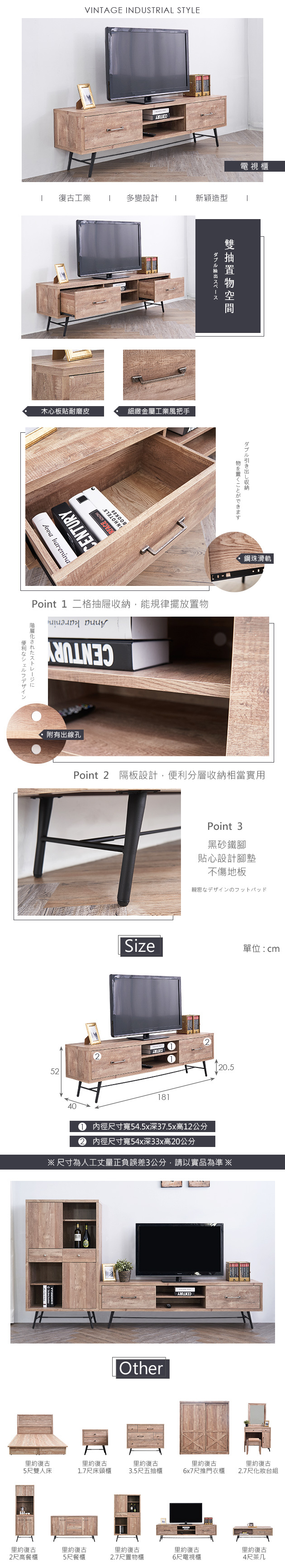 尺寸:寬181x深40x高52公分