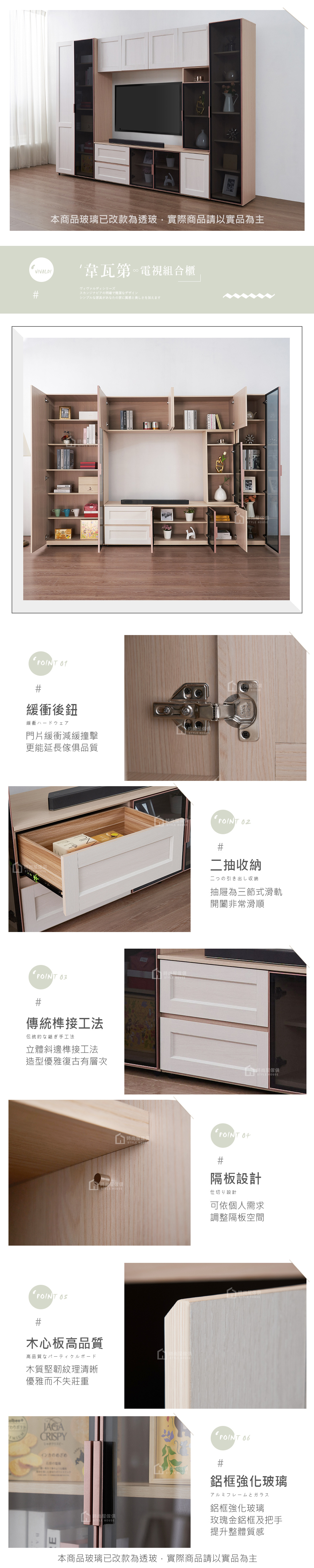 【時尚屋】[RT9]韋瓦第10尺電視組合櫃,色系白原切色為主,點綴客廳視覺空間美感,材質上採用木心板、緩衝後鈕、強化玻璃、三節式'滑軌等,均高於市場之產品規格,品質絕對有保證!此電視櫃在收納空間上採單雙開門+二抽,絕對可滿足您對收納的需求,相當於收納櫃之功能!有了他絕對可以讓您煥然一新!時尚屋帶給您對家具時尚新品味。