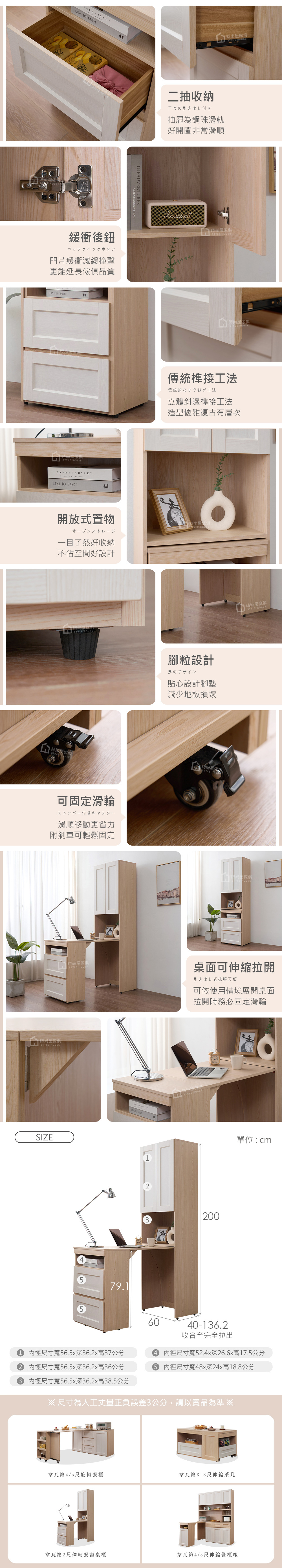 名稱:韋瓦第2尺伸縮餐書桌櫃