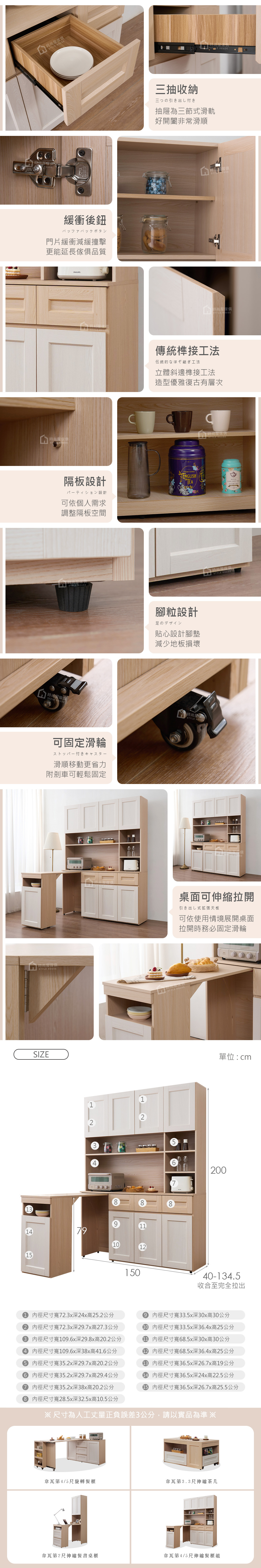 【時尚屋】[RT9]韋瓦第5尺伸縮餐櫃組,色系白原切色為主,點綴餐櫥視覺空間美感,材質上採用木心板、三節式滑軌、緩衝後鈕等,均高於市場之產品規格,品質絕對有保證!此餐櫃在收納空間上採三抽,絕對可滿足您對收納的需求,相當於收納櫃之功能!有了他絕對可以讓您煥然一新!時尚屋帶給您對家具時尚新品味。