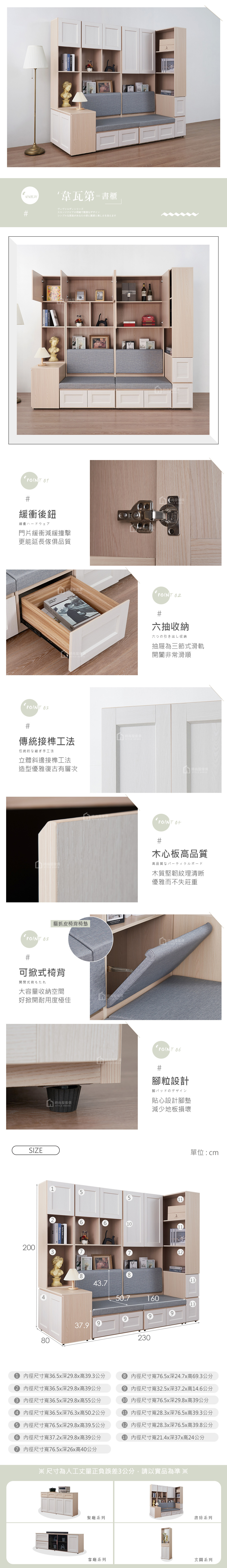 【時尚屋】[RT9]韋瓦第7.6尺沙發書櫃組,色系白原切色為主,點綴書房視覺空間美感,材質上採用木心板、緩衝後鈕、三節式'滑軌等,均高於市場之產品規格,品質絕對有保證!此沙發櫃組在收納空間上採單雙開門+六抽,絕對可滿足您對收納的需求,相當於收納櫃之功能!有了他絕對可以讓您煥然一新!時尚屋帶給您對家具時尚新品味。