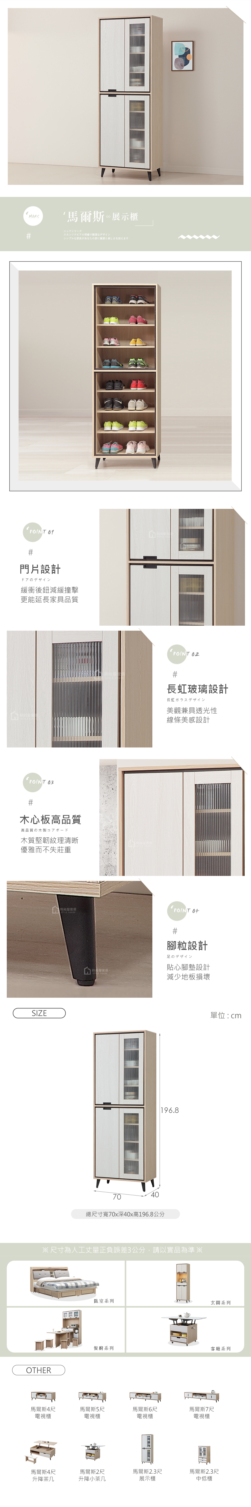 【時尚屋】[RV9]馬爾斯2.3尺展示櫃,色系橡木色為主,點綴客廳視覺空間美感,材質上採用木心板、緩衝後鈕等,均高於市場之產品規格,品質絕對有保證!此展示櫃在收納空間上採雙開門,絕對可滿足您對收納的需求,相當於收納櫃之功能!有了他絕對可以讓您煥然一新!時尚屋帶給您對家具時尚新品味。