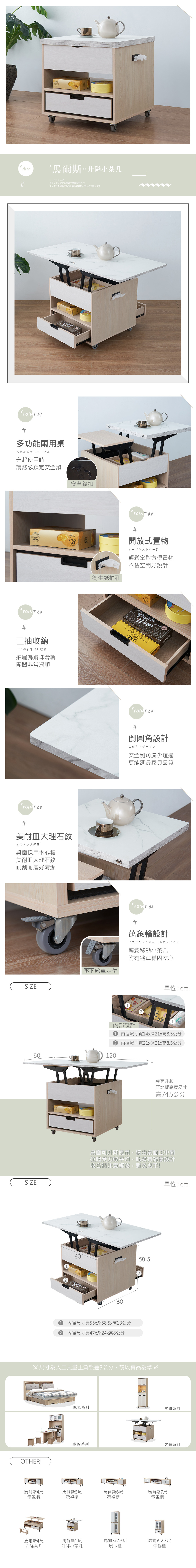 【時尚屋】[RV9]馬爾斯2尺升降小茶几,色系橡木色為主,點綴客廳視覺空間美感,材質上採用木心板、鋼珠滑軌等,均高於市場之產品規格,品質絕對有保證!此茶几在收納空間上採二抽,絕對可滿足您對收納的需求,相當於收納櫃之功能!有了他絕對可以讓您煥然一新!時尚屋帶給您對家具時尚新品味。