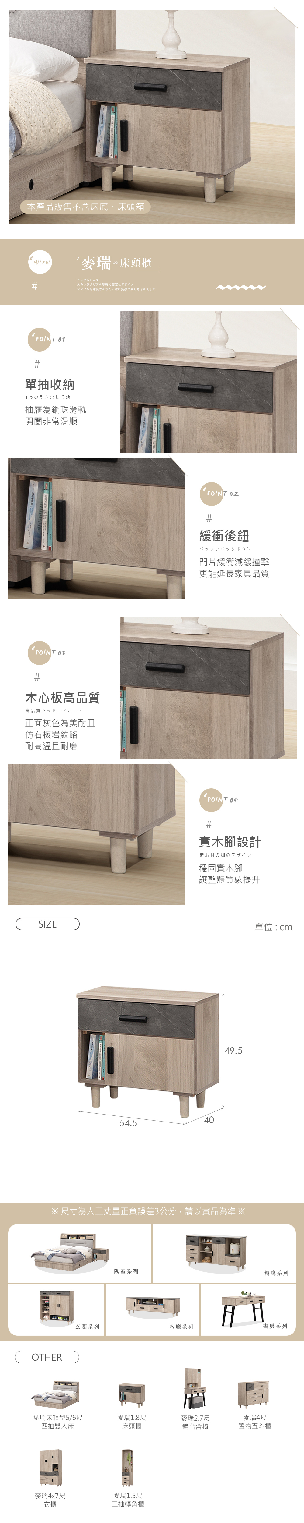 【時尚屋】[CW23]麥瑞1.8尺床頭櫃,色系橡木色為主,點綴臥室視覺空間美感,材質上採用木心板、鋼珠滑軌、緩衝後鈕、實木腳等,均高於市場之產品規格,品質絕對有保證!此床頭櫃在收納空間上採單抽,絕對可滿足您對收納的需求,相當於收納櫃之功能!有了他絕對可以讓您煥然一新!時尚屋帶給您對家具時尚新品味。