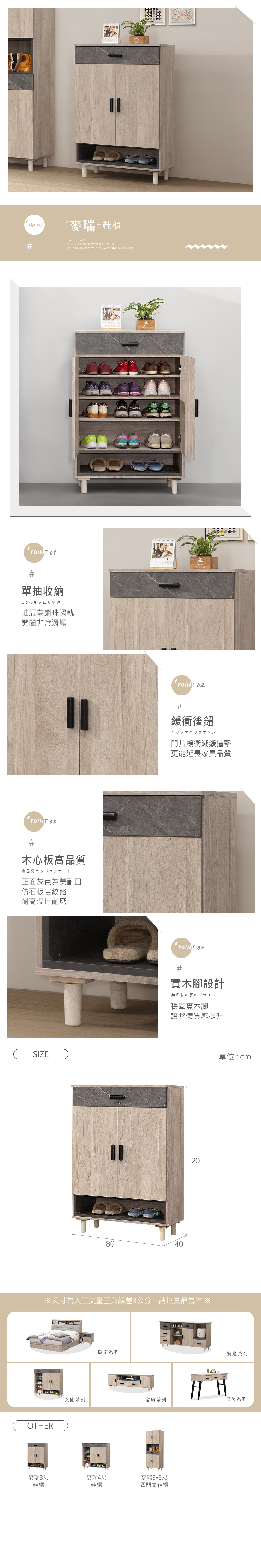 【時尚屋】[CW23]麥瑞3尺鞋櫃,色系橡木色為主,點綴玄關視覺空間美感,材質上採用木心板、鋼珠滑軌、緩衝後鈕、實木腳等,均高於市場之產品規格,品質絕對有保證!此鞋櫃在收納空間上採單抽+雙開門,絕對可滿足您對收納的需求,相當於收納櫃之功能!有了他絕對可以讓您煥然一新!時尚屋帶給您對家具時尚新品味。